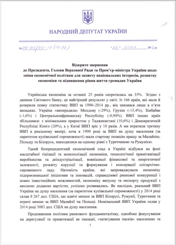 Народний депутат України,