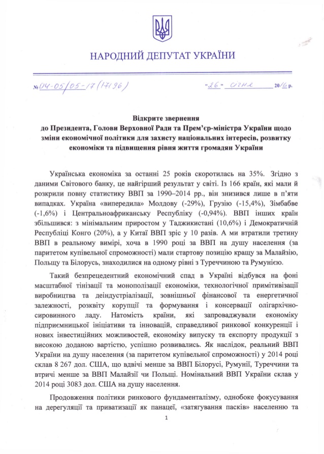 Краще вже перестати видавати бажане за дійсне, "закатати рукава" та перейти до структурних економіних реформ. Тим більше, що їх план - 15 пріоритетних заходів (по 3 складові в 5 ключових сферах - http://www.slideshare.net/galasyuk/ss-57665693) ми з Олег Ляшко ще понад півроку тому запропонували і Президенту, і Прем'єру і Спікеру ВР (яким тоді був нинішній Премє'р).