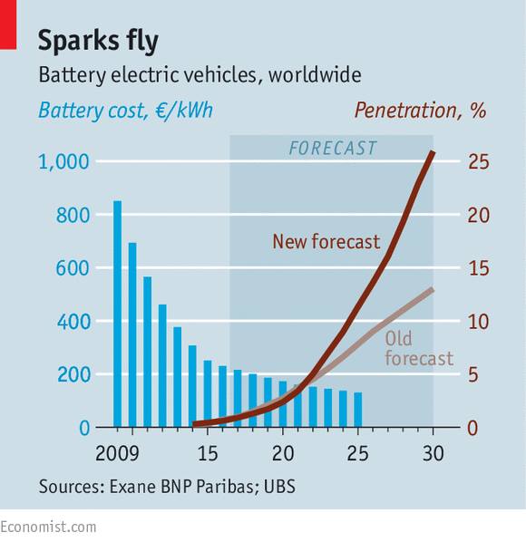 Найбільший світовий автовиробник Volkswagen обіцяє, що у 2025 році електромобілі становитимуть 25% його продажів (www.economist.com/…/21717070-carmakers-face-short-term-pain…).