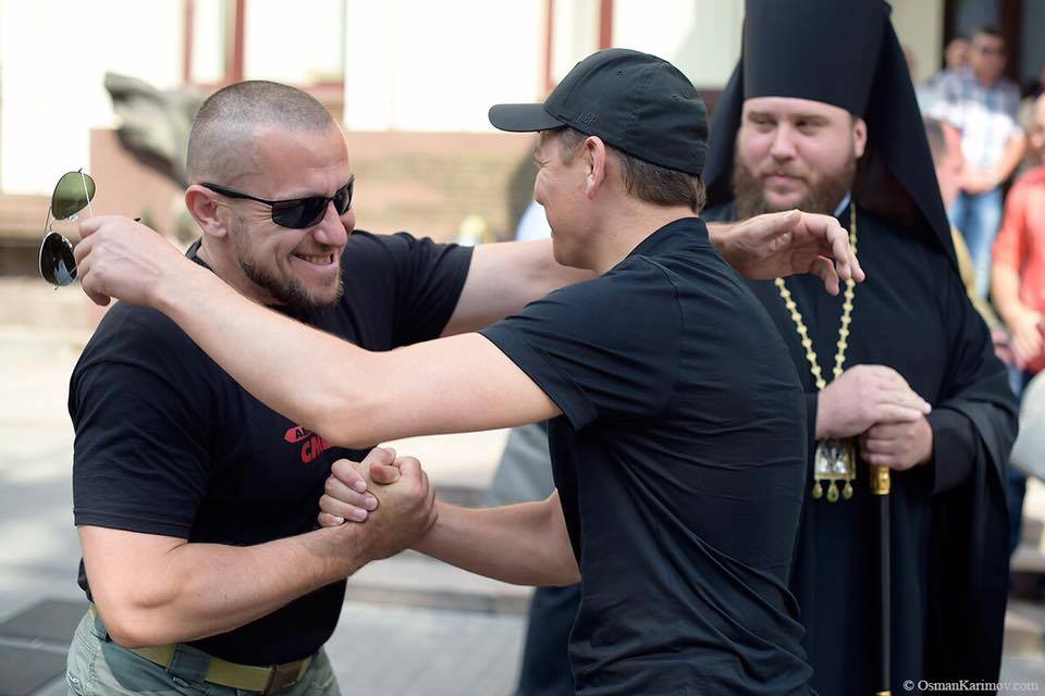 Друге - знято у липні 2014 року на посвяті владикою Симеоном бійців добровольчого батальйону "Шахтарськ".
