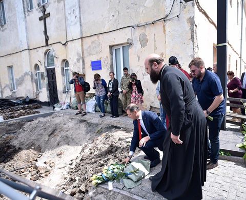 Луцька тюрма. Коли місто почали бомбардувати у 1941 році - НКВС розстрілювало в'язнів і скидало у ямі від снарядів. Тут вбивали політичних в'язнів - у переважній більшості інтелігенцію, а також оунівців. За ініціативи владики Михаїла ями розкапують і лаштують крипти неподалік.