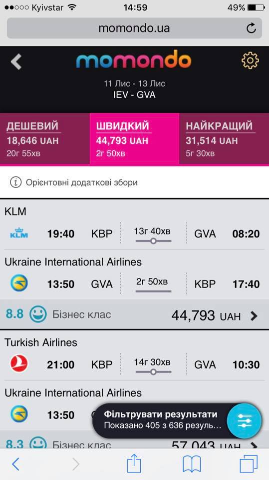 Справедливості заради перевірив, скільки коштує нині переліт бізнес-клясом з Києва до Женеви.