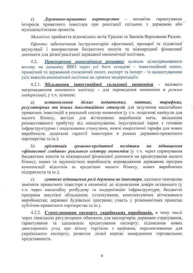 Давайте откровенно: действия Правительства - это не просто бездействие в сфере реформирования, это имитация реформ для того, чтобы Украине опять дали деньги, опять позаимствовали кредиты и т.д. Но кто будет отдавать кредиты, когда экономика практически не работает. Правительство даже не пытается ее запустить. Наша фракция не только акцентирует внимание общества на недостатки государственного управления и состояния дел (практически во всех сферах), а дает реальные и четкие способы для их решения. Более того, мы прописываем конкретные дорожные карты.