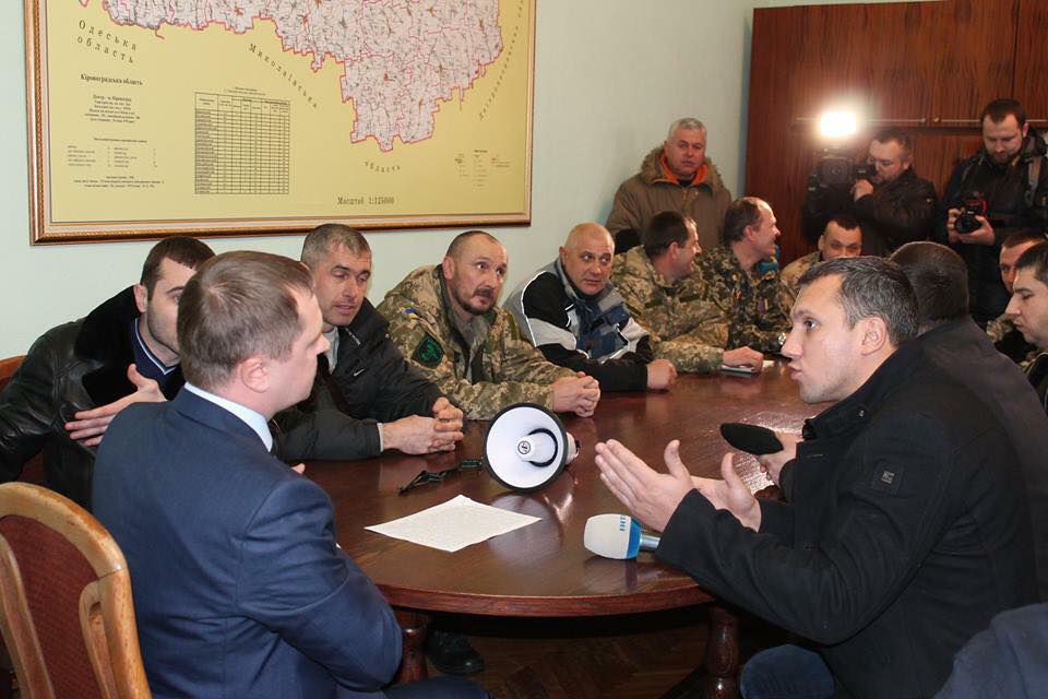Бійці АТО роззлючені злочинною бездіяльністю чиновників, поставили намет на головній площі Кіровограда і чекають конкретних дій від адміністрації та геокадастра. Збираються підписи і формуються списки людей, яким відмовлено в надані землі.
