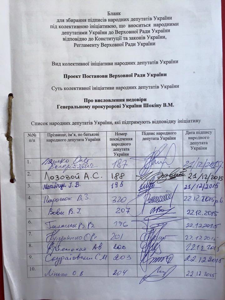 Це правда. Тому вчергове закликаю народних депутатів не розділяти відповідальність за відверто злочинну діяльність Генпрокуратури і підписуватись за відставку Шокіна.