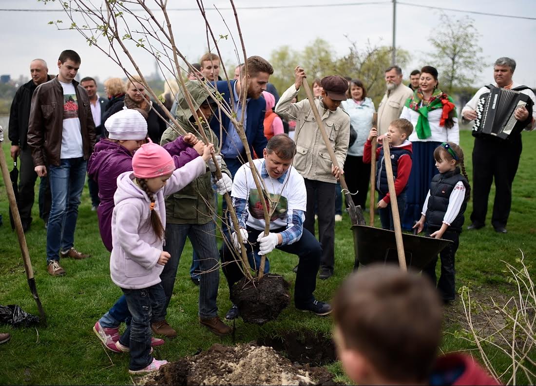 Близько двох сотень людей зібрались разом, щоб посадити калиновий гай.