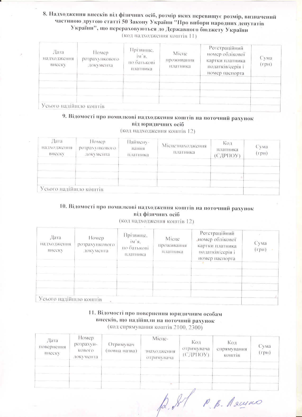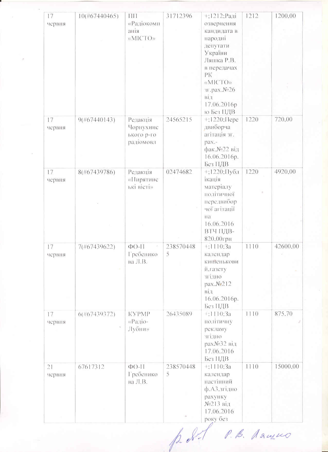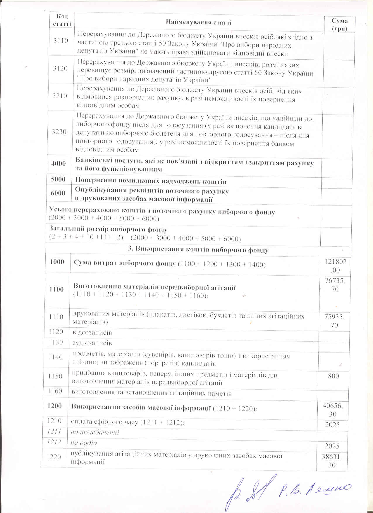 Фінансовий звіт кандидата у народні депутати Руслана Ляшка
