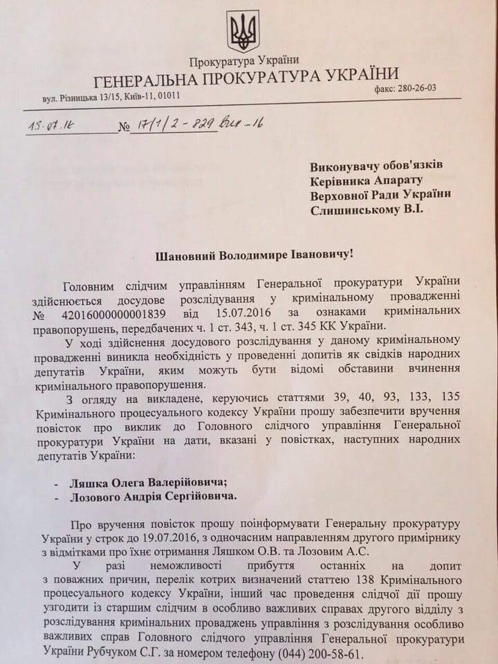 Обох депутатів викликають на допит у кримінальному провадженні, відкритому  Генеральною прокуратурою за фактом погроз прокурору Чернігівської області Віктору Носенку.