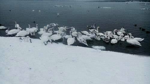 Лебеді щороку прилітають на зиму на водосховище ХАЕС у Острозі. І цьогоріч місцеві мешканці помітили, що нещасні птахи не тільки мерзнуть, а й голодують. За словами місцевої жительки, зграя лебедів за одну хвилину з'їла цілу буханку хліба.