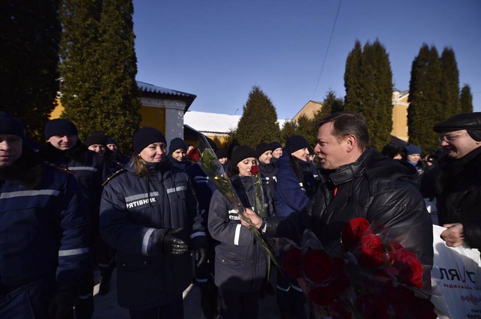 «А ще відзвітував про те, що за ініціативи Радикальної партії з цього року вони отримуватимуть не 3000, а мінімум 5000 гривень на місяць.Це найменше, що я міг зробити для людей цієї важкої і такої потрібної професії. Жінки-рятувальники заслуговують на окрему увагу. Подарував їм по квітці, а кому не лишилося – свої поцілунки. А ще привіз ікону «Неопалимая купина», яка береже від пожеж та стихійних лих. Поки вони захищають нас – нехай ця святиня захищає їх», - зауважив Ляшко.