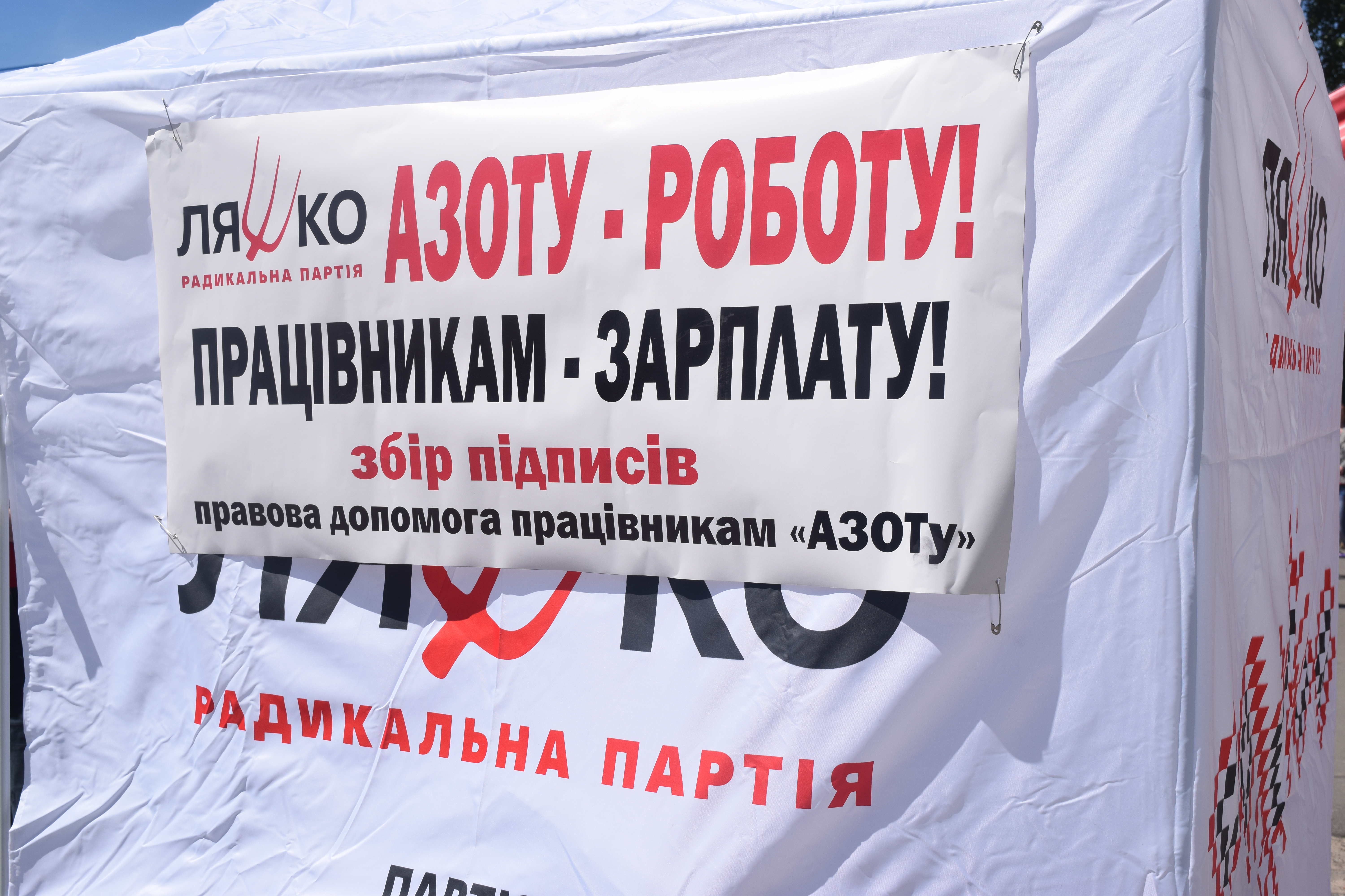Сєвєродончани залюбки підписували звернення, підготовлене радикалами. Ще б пак. В добрі часи на «АЗОТі» працювала чи не десята частина мешканців. І майже в кожного є знайомі, які постраждали внаслідок погіршення становища на комбінаті. Окрім збору підписів, з наметів РПЛ роздаються інформативні листівки «Луганщина радикальна», які містять останні новини з «АЗОТу», слова підтримки та пропозиції лідера Радикальної партії Олега Ляшка щодо стабілізації ситуації на підприємстві. Тут же опубліковано оголошення щодо того, що в приймальні народного депутата Олега Ляшка в Луганській області щосуботи з 12:00 до 15:00 проводиться безкоштовна консультацію з питань трудових прав. Прийом здійснює юрист, член РПЛ Володимир Камінський. Для привернення уваги до палатки прикріплений плакат «Азоту» - роботу, працівникам - зарплату», а зі звукопідсилюючого портативного пристрою лунає записаний голос Ляшка. Серед записів, до речі, є й відповідне звернення до «Азотівців» з обіцянням сприяти якнайшвидшій нормалізації ситуації на підприємстві.