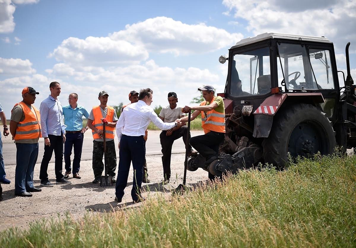 Дорогою з Каховки на Херсон, в рамках робочої поїздки на південь України, лідер Радикальної партії Олег Ляшко зупинився, щоб поспілкуватися із дорожниками Бериславського району на Херсонщині.