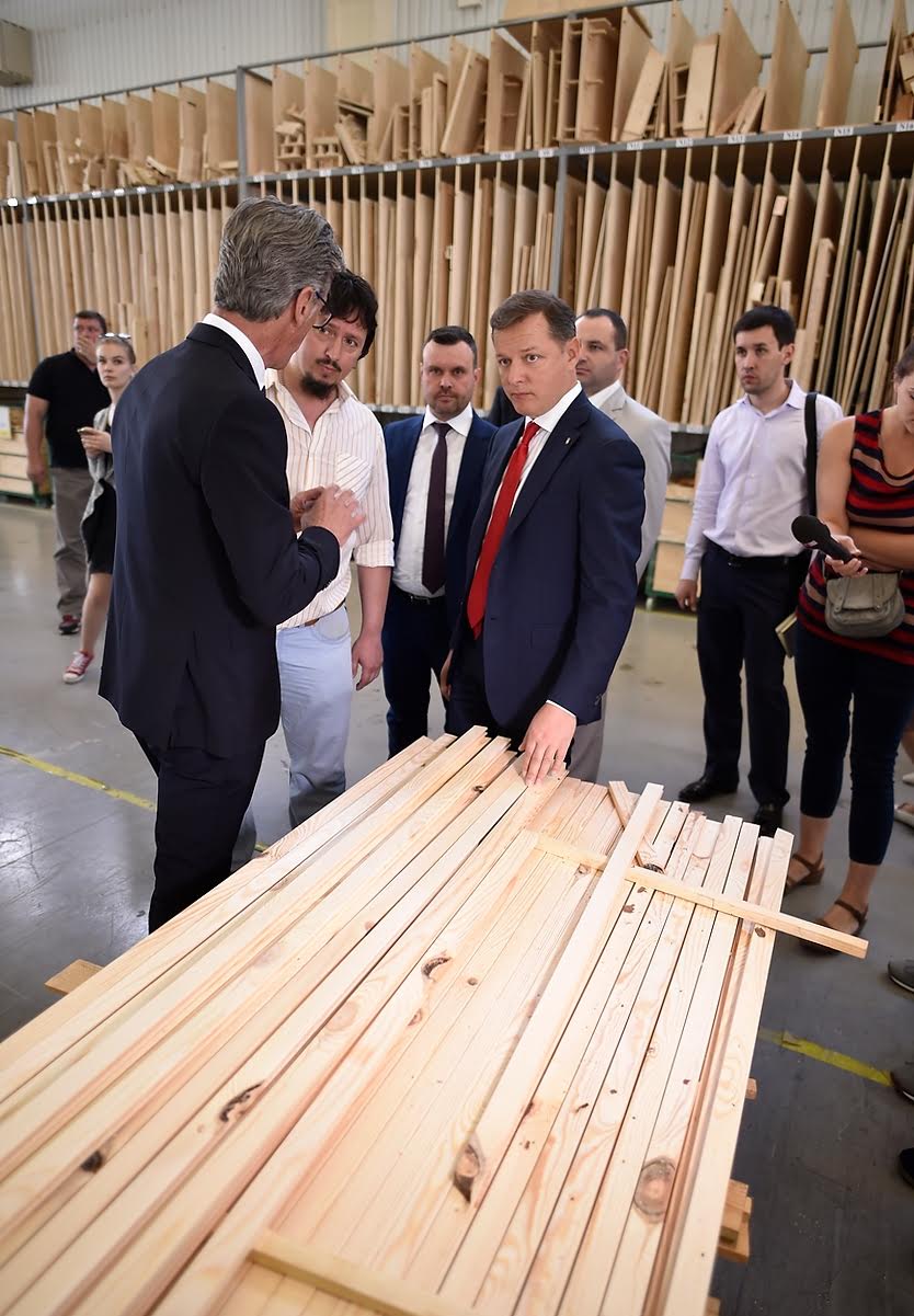 «Ваше підприємство – це приклад того, чому не можна скасовувати мораторій на вивезення лісу-кругляка. Завдяки його дії, у вас є сировина для виготовлення продукції, а в півтисячі людей – робота і зарплата, близько 5000 грн. А коли в необробленому вигляді ліс забирають за кордон, то вони там створюють робочі місця, а тут на Житомирщині, де 80 % лісів, люди сидять без роботи. Хочуть наш ліс – нехай створюють робочі місця, ставлять нове обладнання, завозять сировину і виготовляють готову продукцію в Україні, як це робиться на цьому житомирському підприємстві», - наголосив Ляшко.
