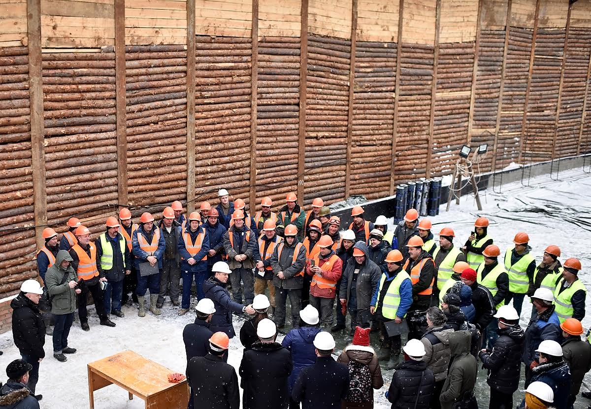 Політик поспілкувався із будівельниками та вручив їм грамоти, премії та іменні годинники.