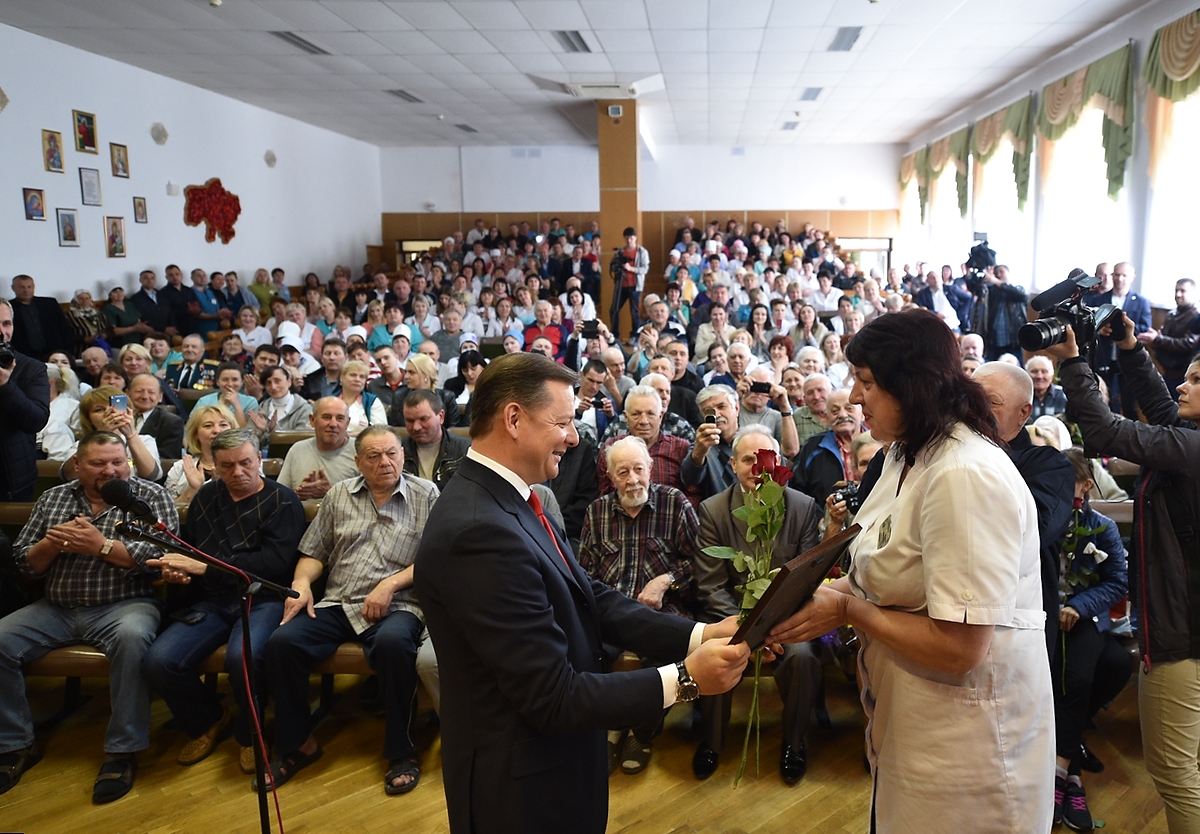 Олег Ляшко подякував працівникам медзакладу за відданість роботі, поспілкувався із ветеранами, які лікуються у шпиталі, та побажав їм міцного здоров’я. Політик зазначив, що не дасть нікому забрати у них Свято Перемоги.