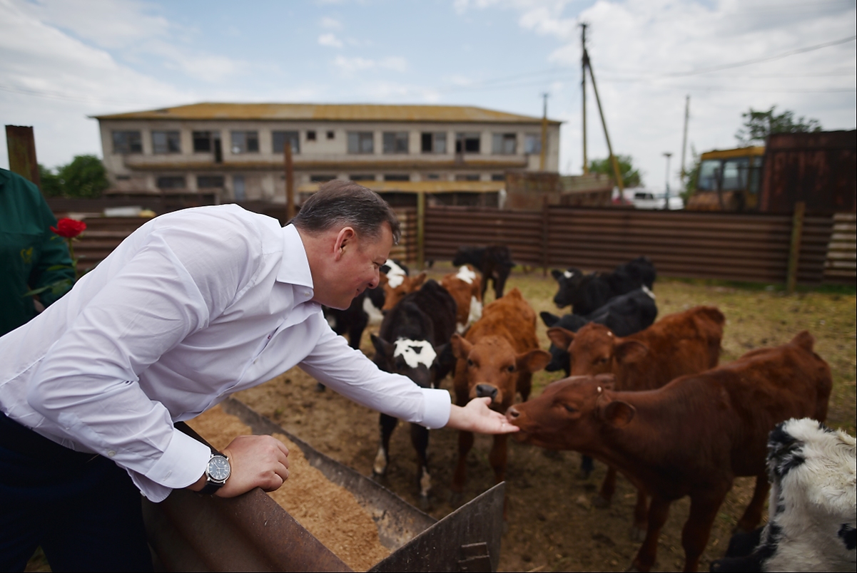 Політик обійшов господарство. Зупинився, щоб погладити телят.
