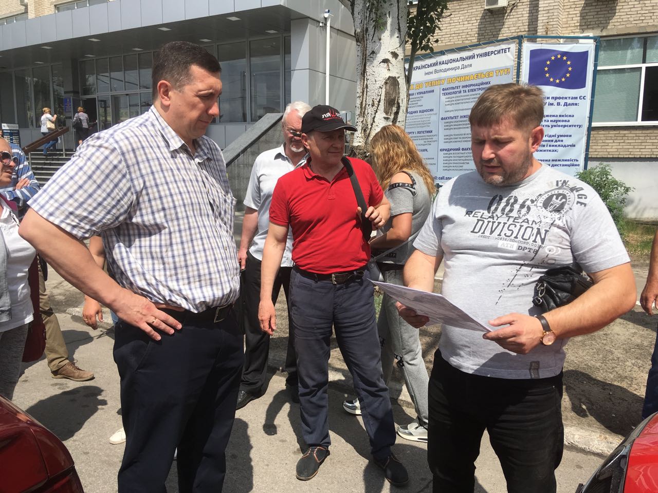 З площі перед міськрадою пікетувальники колоною рушили до Луганської облдержадміністрації, де передали обласним чиновникам звернення з вимогою сприяти вирішенню питання проблемних доріг в Сєвєродонецьку.