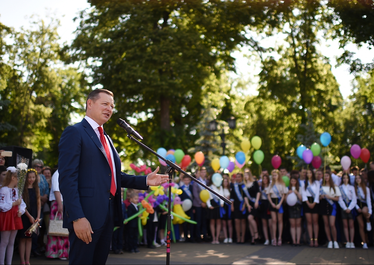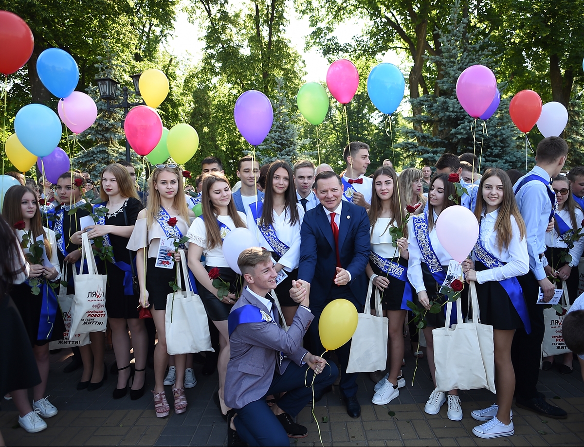 Олег Ляшко приїхав в рідні Прилуки, щоб взяти участь у святі останнього дзвоника в гімназії №1 ім.Георгія Вороного. Виступаючи на "лінійці", політик на власному прикладі розповів, як простий хлопець з дитбудинку може досягти всього в житті.