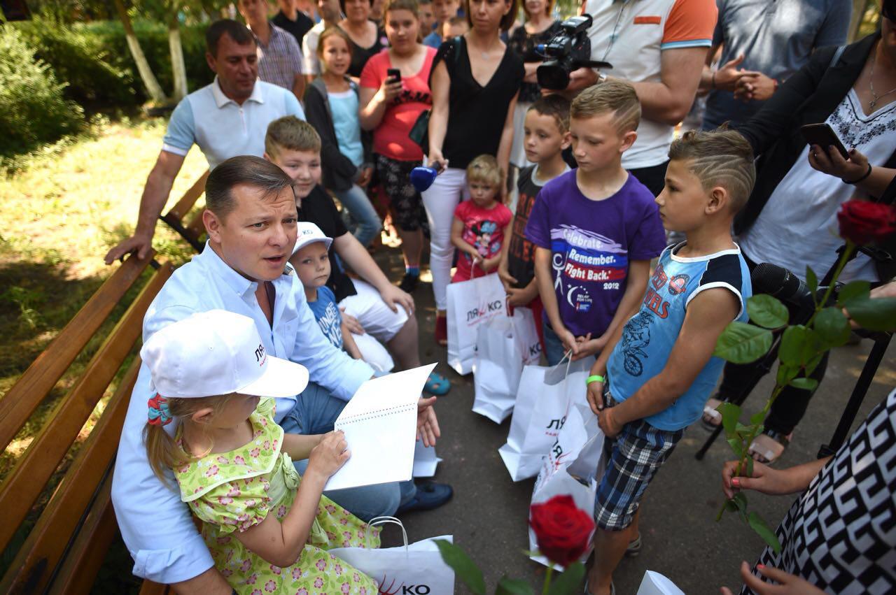 «Колись я так само, як і ви, виховувався у дитячому будинку та в інтернаті на Чернігівщині. І всього, що маю зараз, я добився сам. Ким ви будете – залежить тільки від вас. Тому добре вчиться, вірте в себе, ніколи не опускайте руки і у вас все вийде. А я зроблю все, щоб ви мали можливість себе реалізувати в рідній країні. Щоб не тільки ті, хто мають папу й маму з мішком грошей, а й кожна дитина в країні могла чогось добитися», - звернувся до дітей Ляшко.