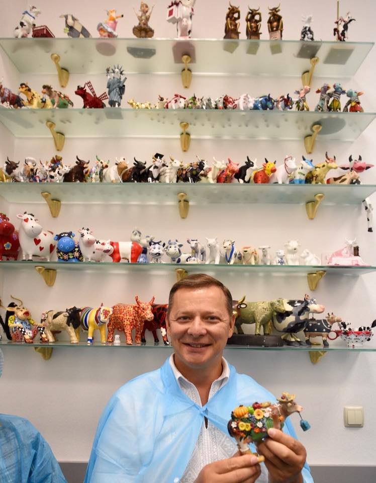 За підтримку фермерів і виробників молочної продукції на підприємстві лідеру РПЛ подарували статуетку корови. Знають, що Олег Ляшко вже багато років їх колекціонує.