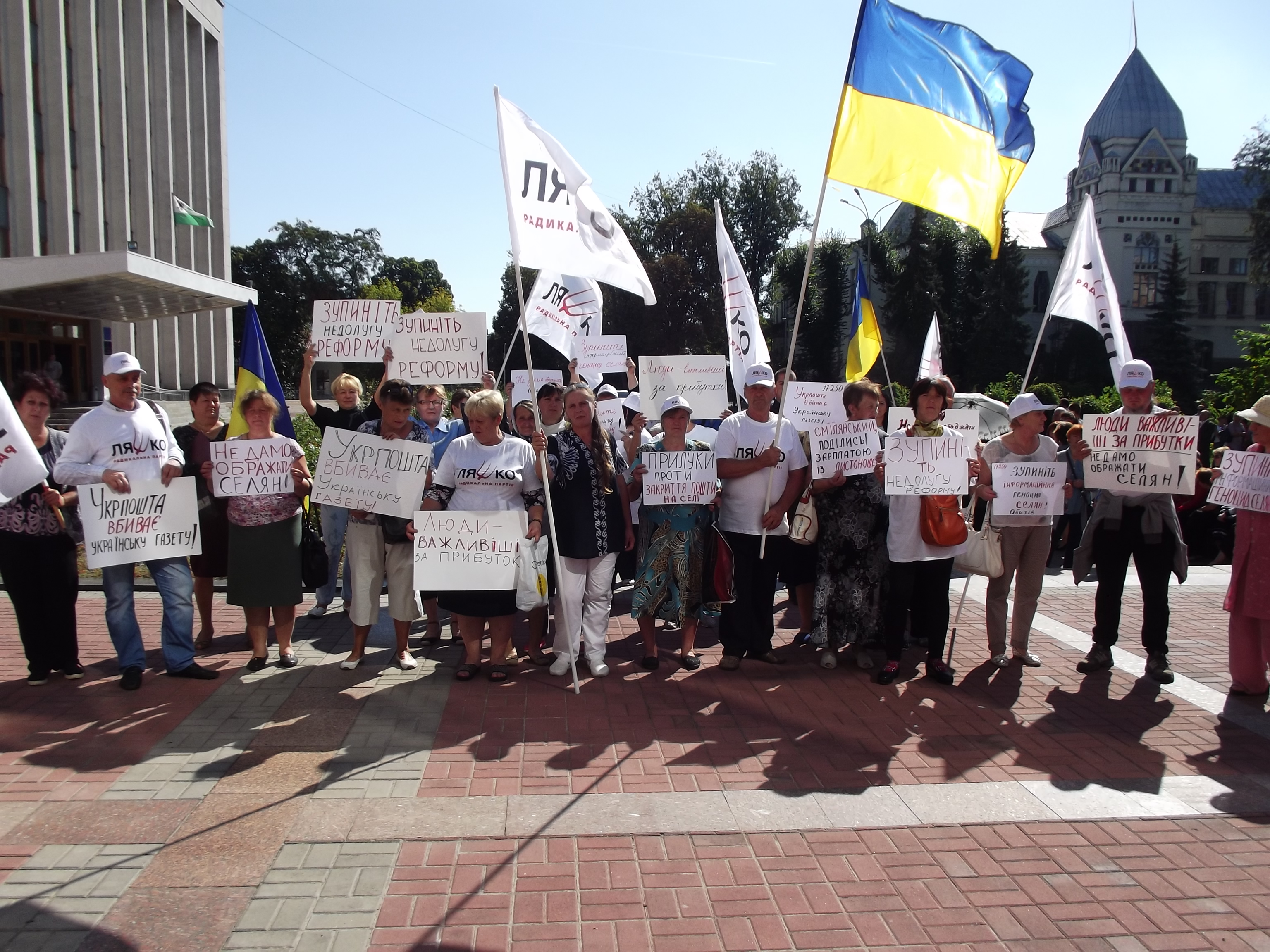 Більше двох сотень активістів Радикальної партії Олега Ляшка і жителів сіл з усіх куточків Чернігівської області зібралися під будівлею Чернігівської обласної ради, де відбувалося чергове спілкування обласних депутатів, голів ОТГ та керівників обласної ради й адміністрації з керівником Укрпошти Ігорем Смілянським та його заступниками.