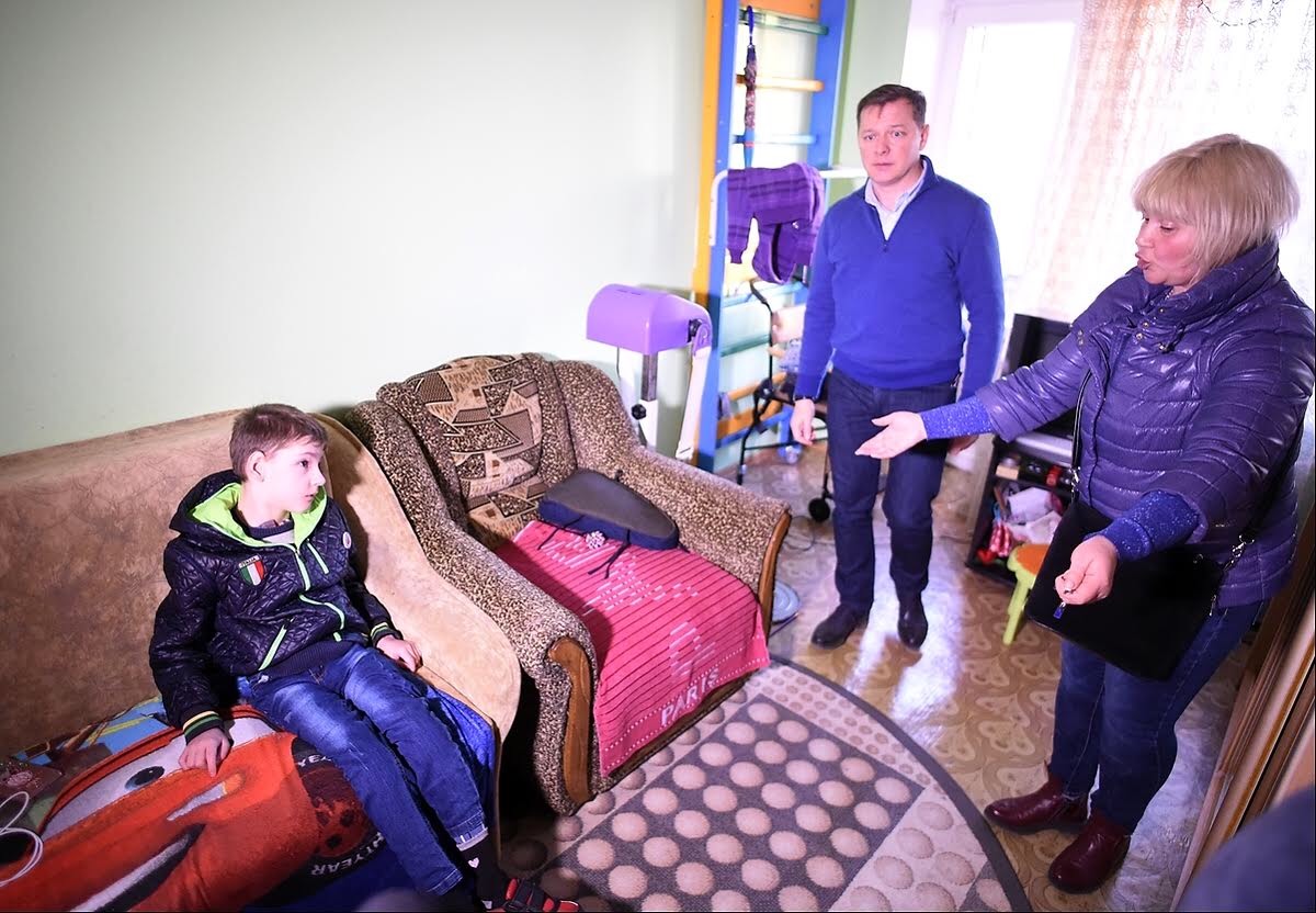 «Уявіть собі, двоє дітей з ДЦП тягати туди-сюди на 4 поверх. Жінка роками б’ється і нікому не потрібна. Я думаю, що у Кам’янці-Подільському можна знайти квартиру для цієї особливої сім’ї або на 1 поверсі, або у будинку з ліфтом. Зробіть це для родини!», - дав на горіхи Ляшко губернатору Хмельниччини.
