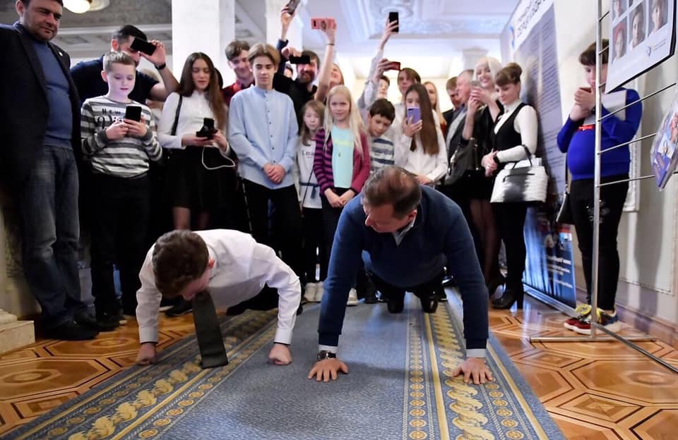 Олег Ляшко не вперше влаштовує міні-змагання у стінах Верховної Ради. У жовтні минулого року політик разом із українською рекордсменкою з воркауту Ніколь Князевою зробили по 30-віджимань.