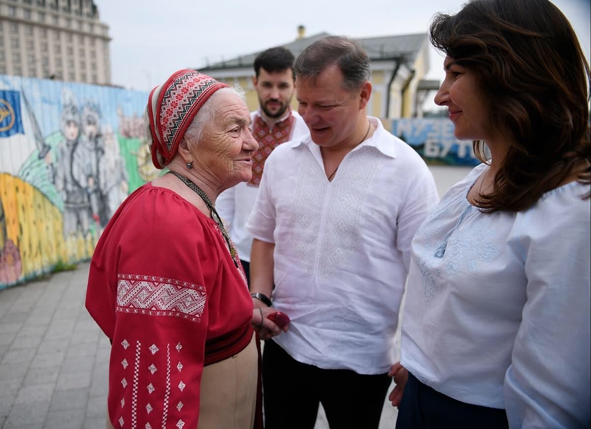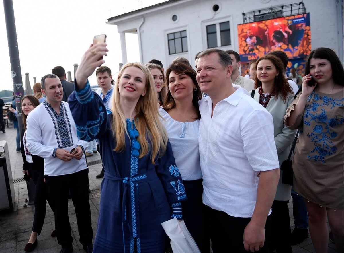 У День вишиванки з самого ранку Олег Ляшко разом з дружиною Росітою прийшов на Поштову площу на святкування "ВишанкаDAY". Політик вдягнув свою найулюбленішу сорочку - решетилівську, вишиту білим по білому.