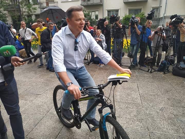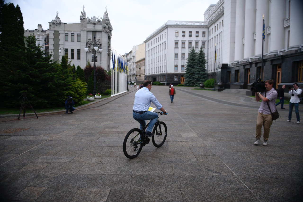 Лідер Радикальної партії приїхав на зустріч з Президентом України на велосипеді. Із зали, де лідери фракцій очікували Володимира Зеленського, Олег Ляшко почав вести пряму трансляцію на Facebook. Президент запізнився на 20 хвилин і запросив парламентаріїв до іншої зали. Але Олега Ляшка з телефоном пропускати не захотів. Охорона стала стіною біля входу до зали і закрила двері.