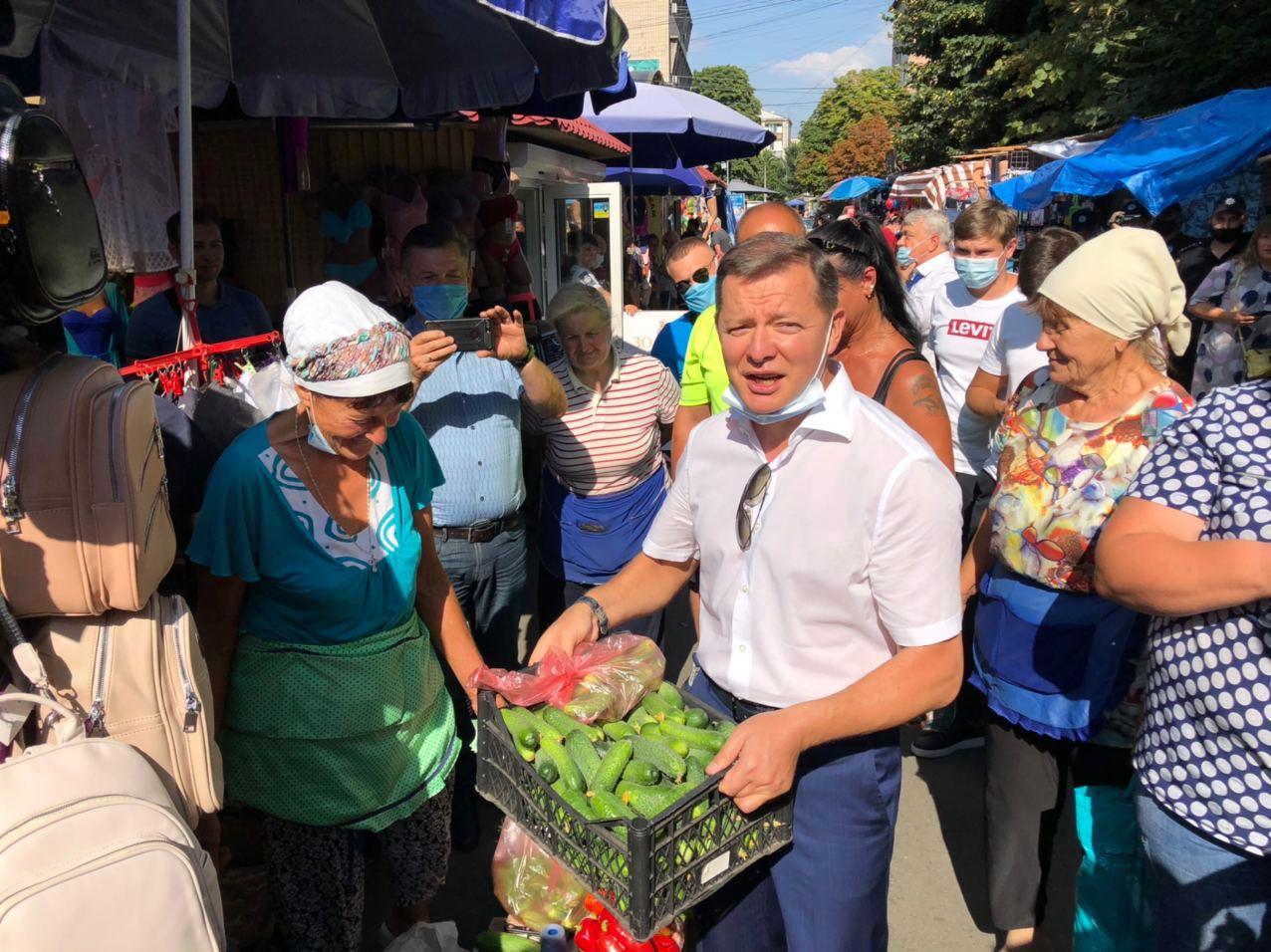 Олег Ляшко обурився, що літні люди змушені у 35-грудусну спеку торгувати на базарі, бо держава не змогла забезпечити їх гідною пенсією. Щоб селянам було вигідно збувати свою продукцію - запропонував відновити заготконтори.